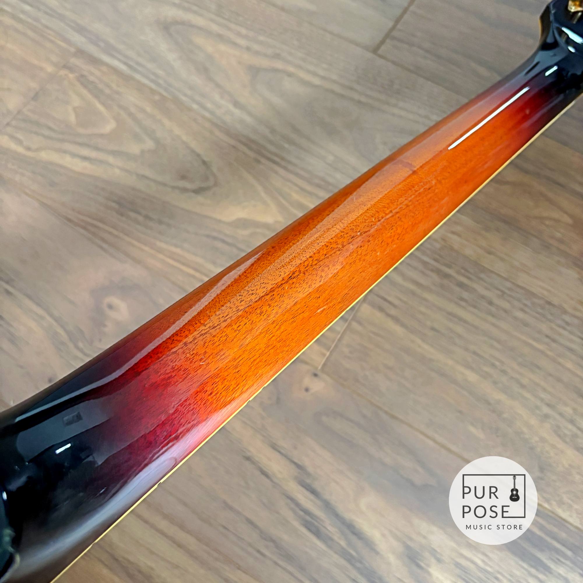 ボディに経年による一箇所のクラックが見受けられますが、内部までは到達しておらず、オーバーラッカー処理によりフラットになっています。段差はなく、構造およびサウンドへの影響もありません。